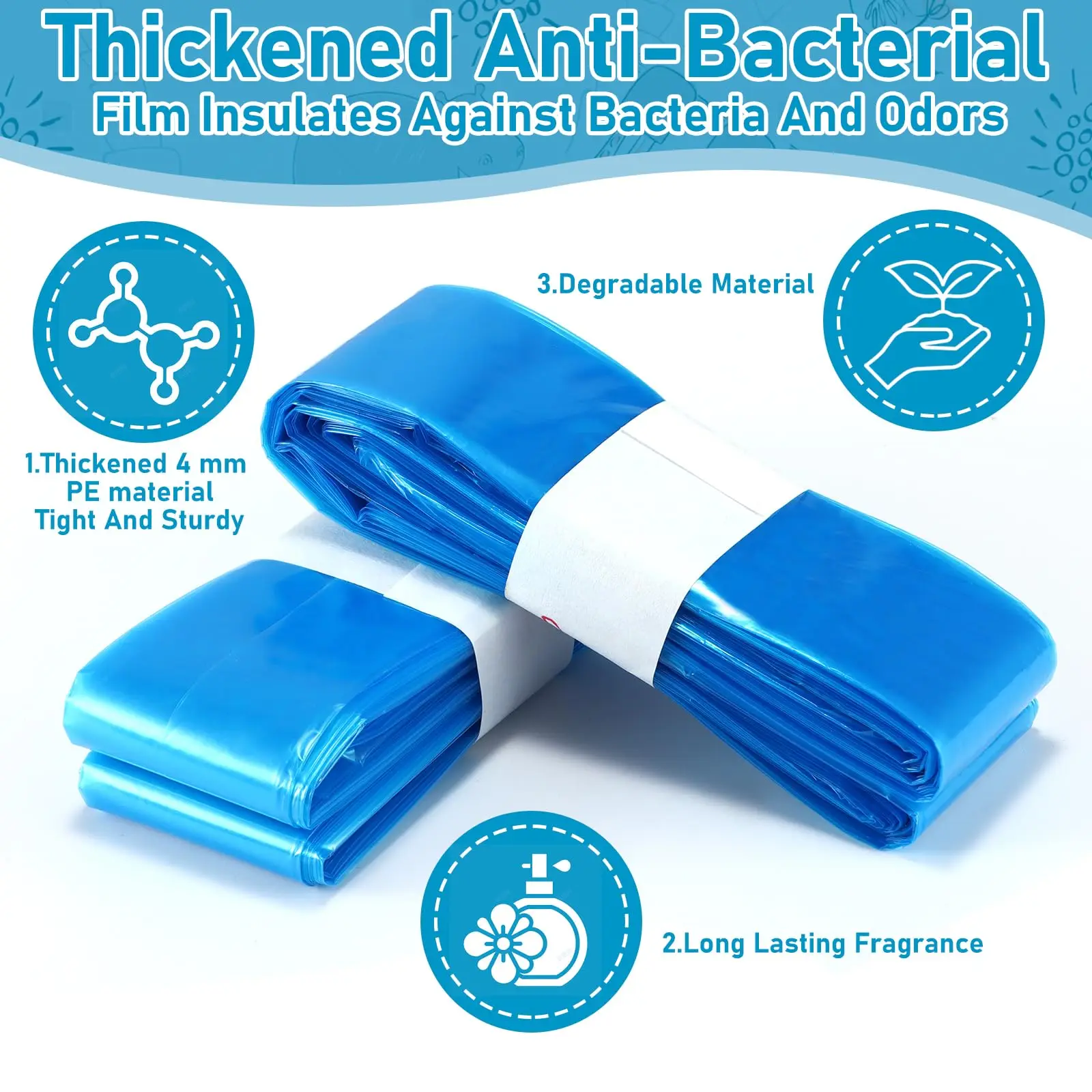 1.Secure and Sturdy: These replacement trash bags are made of exquisite PE material, which provides them with security and sturdiness for your daily use. They are durable and anti-tear, so you can store your waste easily and securely.
