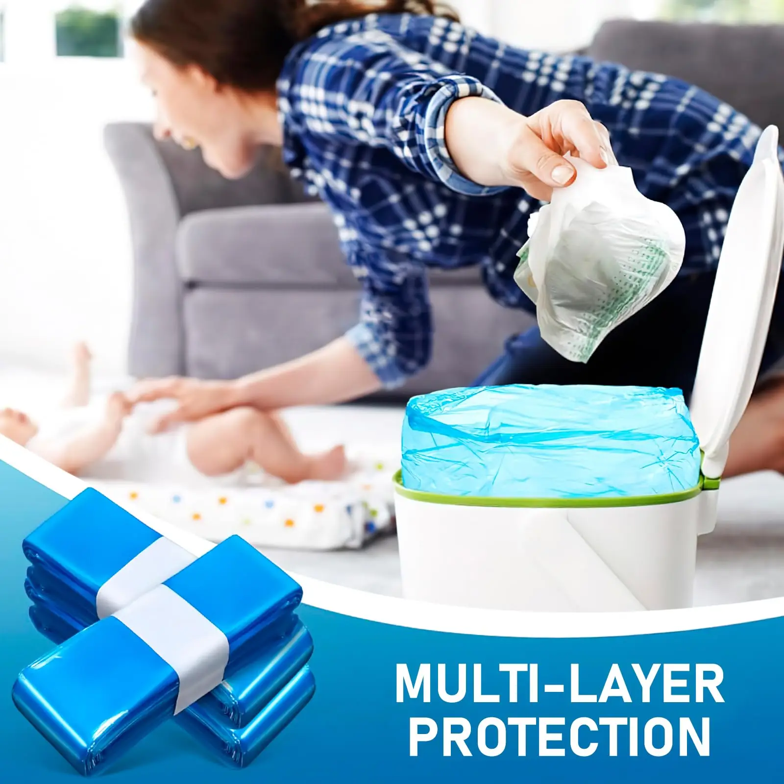 5.Perfect for Various Spaces: You can use these replacement trash bags in different areas of your home, such as living rooms, nursery rooms, and bedrooms, to maintain hygiene and order. They are very useful for new parents who have to deal with diapers and other trash on a daily basis.