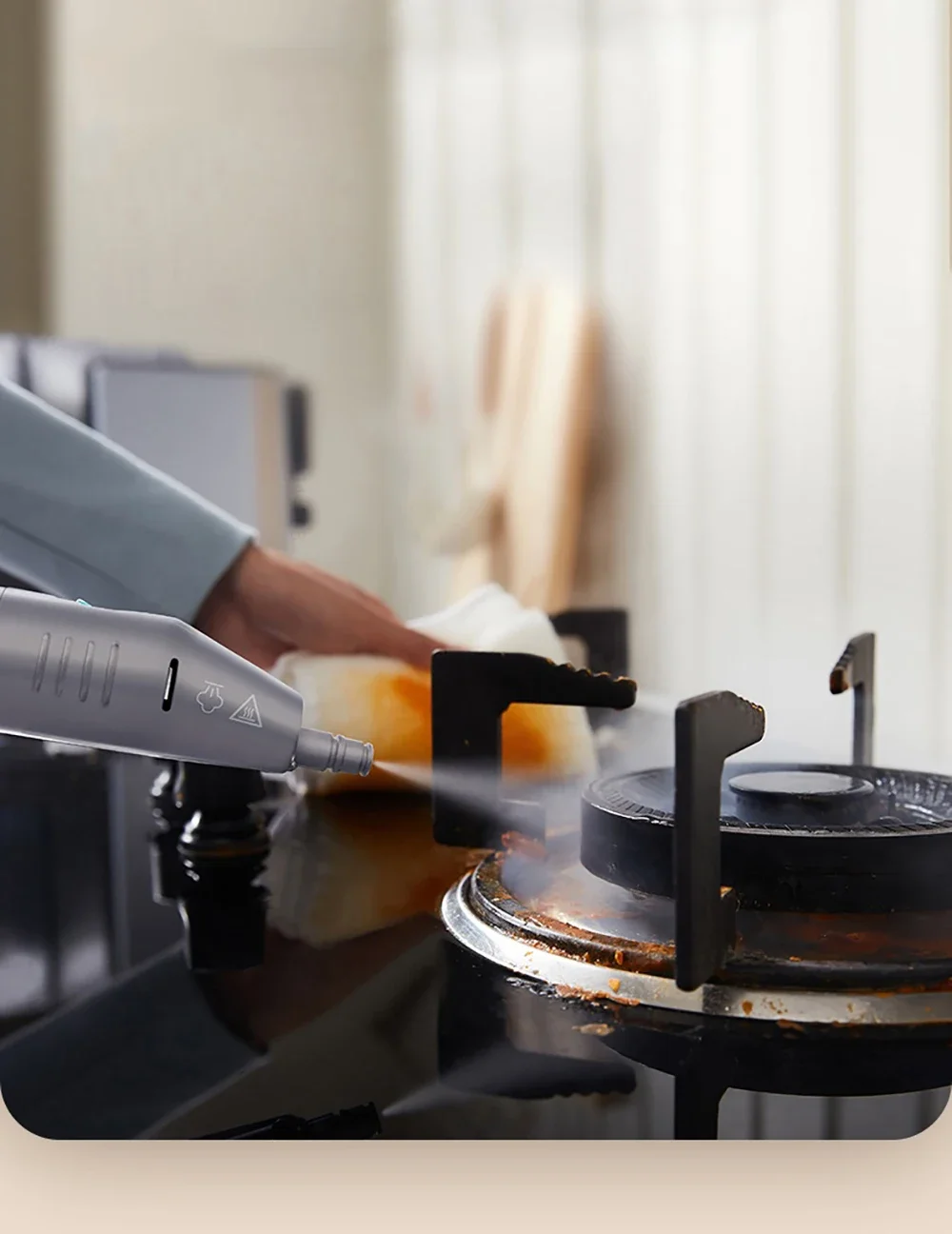 Paired with a dedicated nozzle, it directs a large amount of steam directly onto the surface, making oil and dirt stains no longer stubborn, leaving items clean and like new