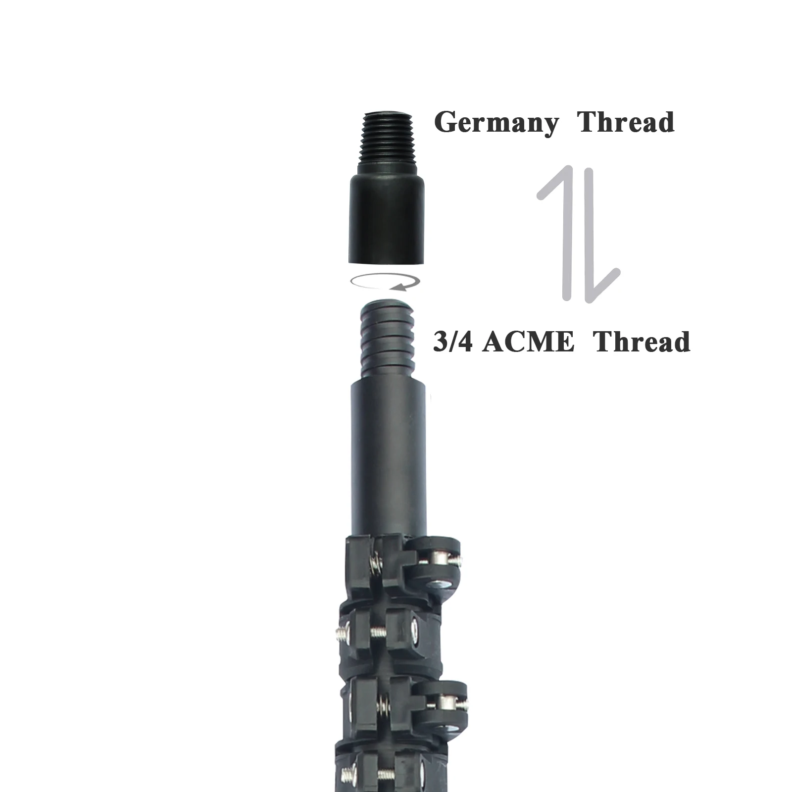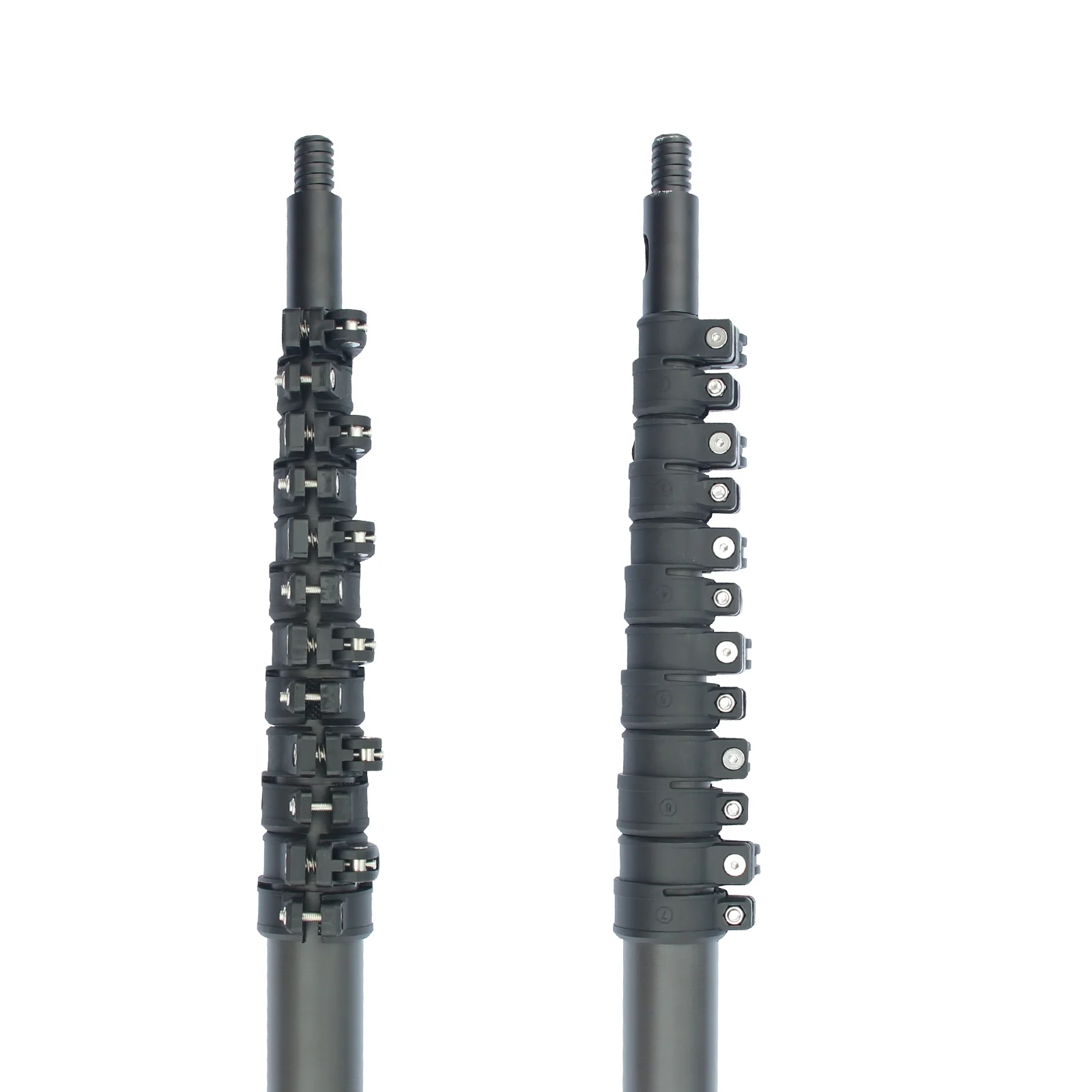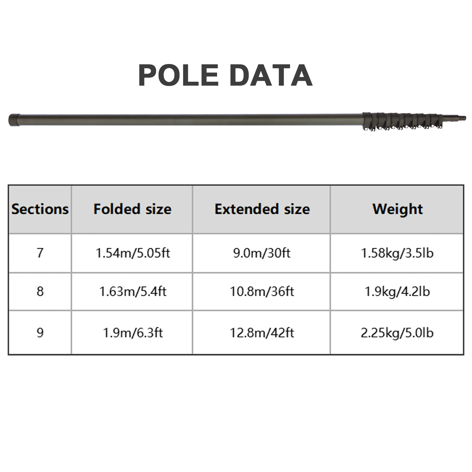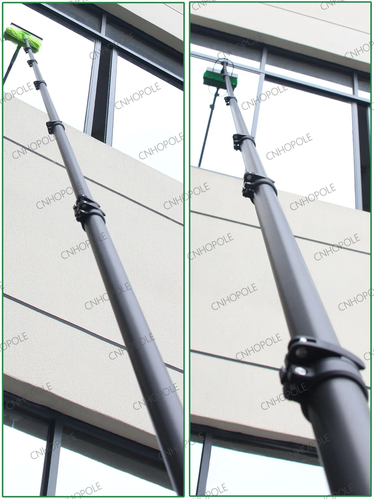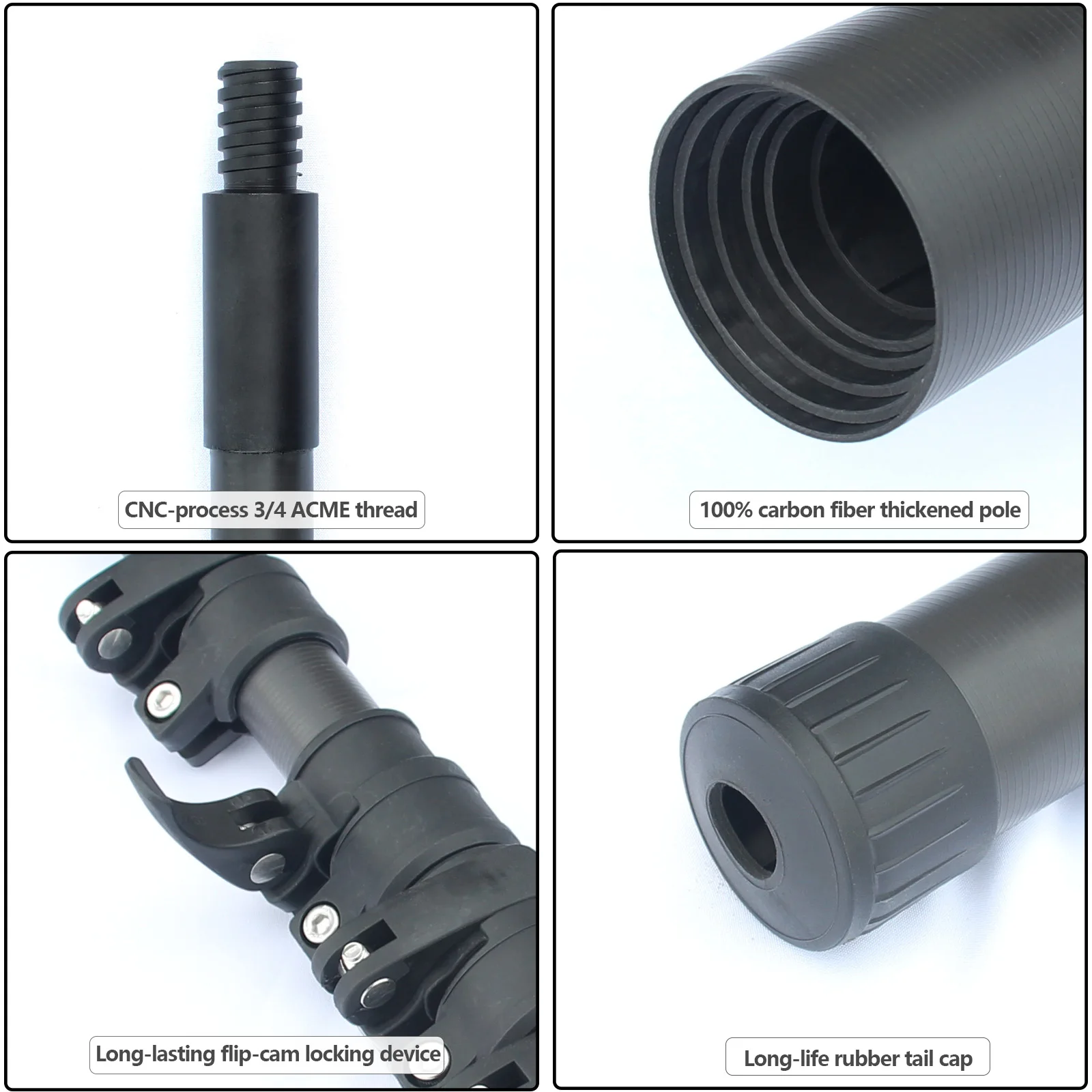 1,EASY UPRIGHT EXTENSION AND USE:With an ergonomic design for extension pole, there are protective mechanisms and anti-pinching treatments on the parts that directly contact the skin.During use the carbon fiber telescopic pole, the folding and unfolding are very smooth like silk.2,SAVE TIME/EFFICIENT/HEAVY DUTY:Only need to safely stand on the ground without a ladder, and you can reach a height of up to 30/36/42FT(any custom lengthup to 36ft If you choose 36ft) for your work.With American thread((3/4” ACME Threaded Pole Tip) A German-style threaded connection adapter is provided to users, allowing them to freely switch between the two types of threads.The wall thickness of the rod reaches 1.0mm, providing sufficient strength to meet the user’s requirements. You don’t need to worry about it breaking or deforming.3,VERSATILE, MULTIPURPOSE:Use with Twist-On Household Tools. Simply twist-on the householdtool of your choice: Water flow through brush,window cleaning,solar panel cleaning,Paint Roller, Squeegee, Cobweb Duster, Ceiling Fan Duster, Feather Duster, Mop, Broom, Fruit Picker, Light Bulb Changer, Utility Hook, and others! Works with all Attachments.4,ANTI-ROTATION DESIGN:The aluminum tune inner-wall has anti-rotation design, which can effectively prevent the telescopic pole from rotating during use and affecting the use of the top tool.No more frustrations with pole sections getting stuck from traditional twist-lock extension poles.5,LIGHTWEIGHT and LONG-LIFE:It weighs only 55% of an aluminum alloy telescopic pole of the same size, making it much easier for users to handle, even female users can use it effortlessly (30ft pole). Its excellent flexibility, corrosion resistance, and rust-proof properties ensure long-lasting use.
