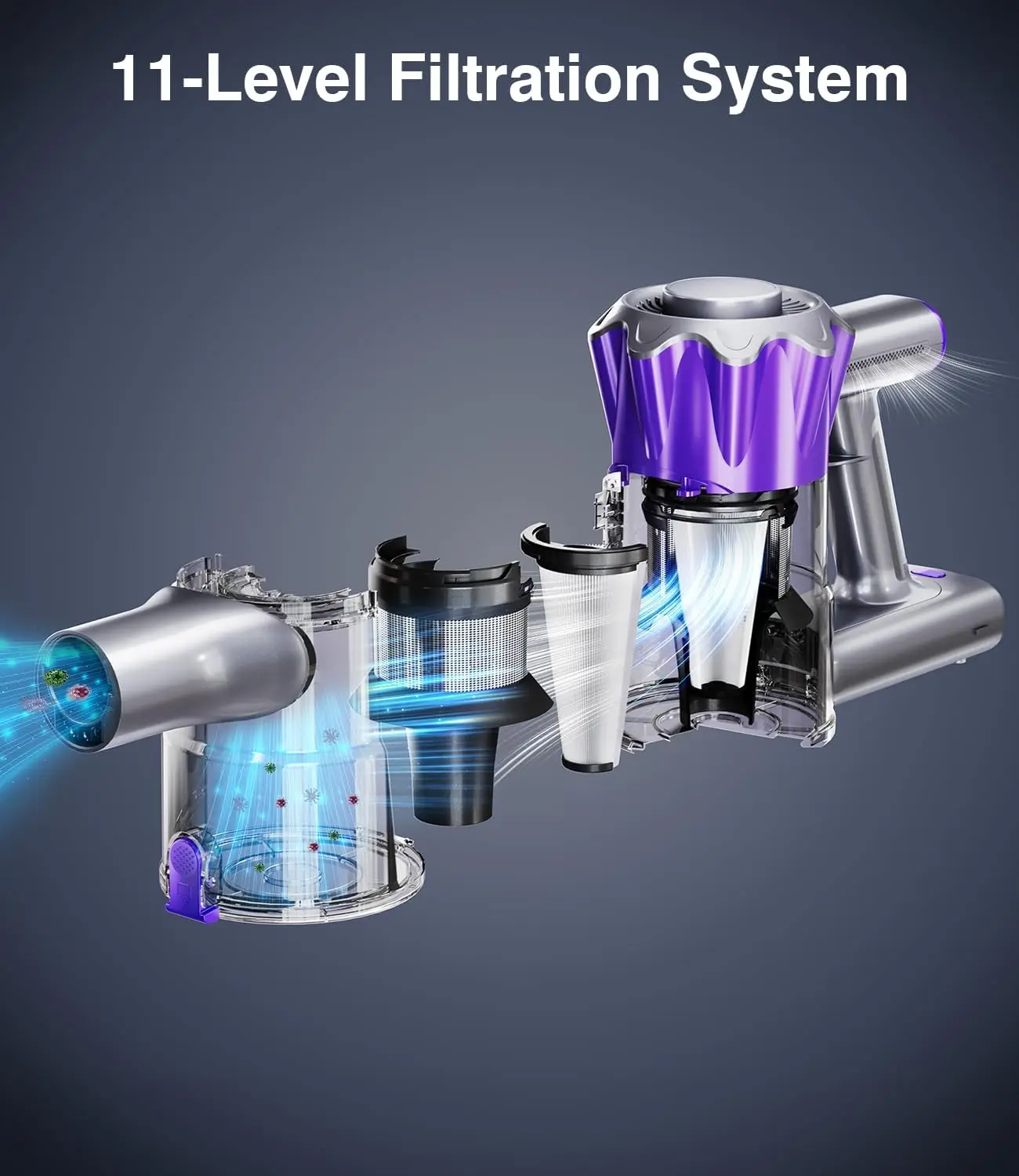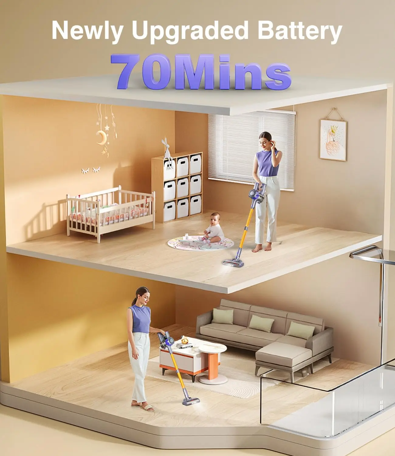580W Powerful Cordless Stick Vacuum Cleaner, 70Mins Battery, Anti-Tangled for Hardwood Floors Carpets Pet Hair