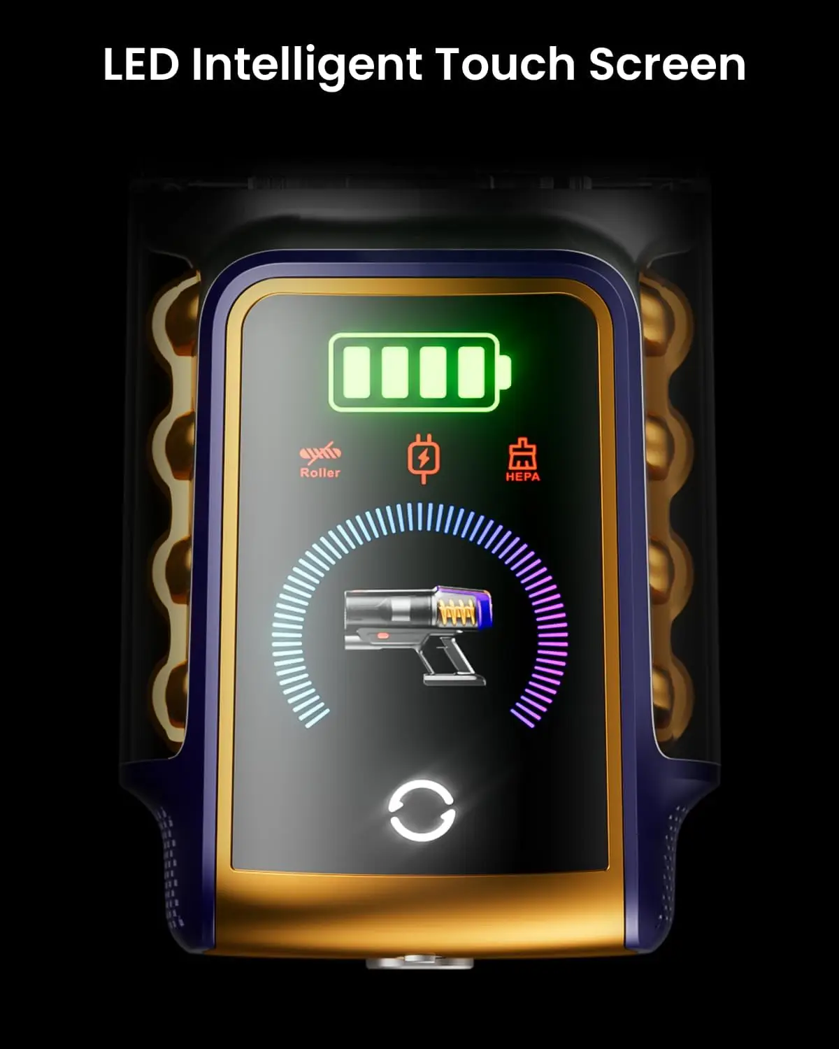 【Powerful Suction Performance】This cordless vacuum cleaner features a 650W brushless motor with noise-reduction technology, delivering up to 55Kpa suction power across three adjustable settings. It effectively removes pet hair and debris from carpets, hard floors, corners, and under furniture while maintaining quiet operation below 62dB. 【Extended Runtime】Equipped with eight lithium-ion batteries (2500mAh each), it provides up to 65 minutes of cleaning on low suction or 30 minutes on high after a full 4-hour charge. The wall-mount charger supports automatic charging, and spare batteries are available for extended cleaning sessions without interruption. 【Anti-Tangle Brush Design】The V-shaped rotating brush head minimizes hair tangles, making it ideal for pet owners. The dual-sided floor brush rotates up to 270°, and integrated LED lights illuminate dark areas under beds, sofas, and along edges for thorough cleaning. 【Advanced Filtration System】An eight-layer precision filtration with multi-vortex cyclonic separation blocks 99.99% of particles down to 0.3 microns, releasing clean air. The 1.8-liter dustbin allows one-touch emptying, reducing maintenance time and enhancing efficiency for whole-home cleaning. 【User-Friendly Features】The high-definition color LED display offers touchscreen control to adjust suction power and shows real-time battery life. Large icons ensure easy use for all ages and vision levels, with alerts for maintenance needs to keep the vacuum in optimal condition. 【Convenient Design & Support】The self-standing design lets you pause cleaning without tipping over. An adjustable telescopic tube accommodates different user heights. Backed by reliable customer service, we provide ongoing support and quality assurance for your purchase.