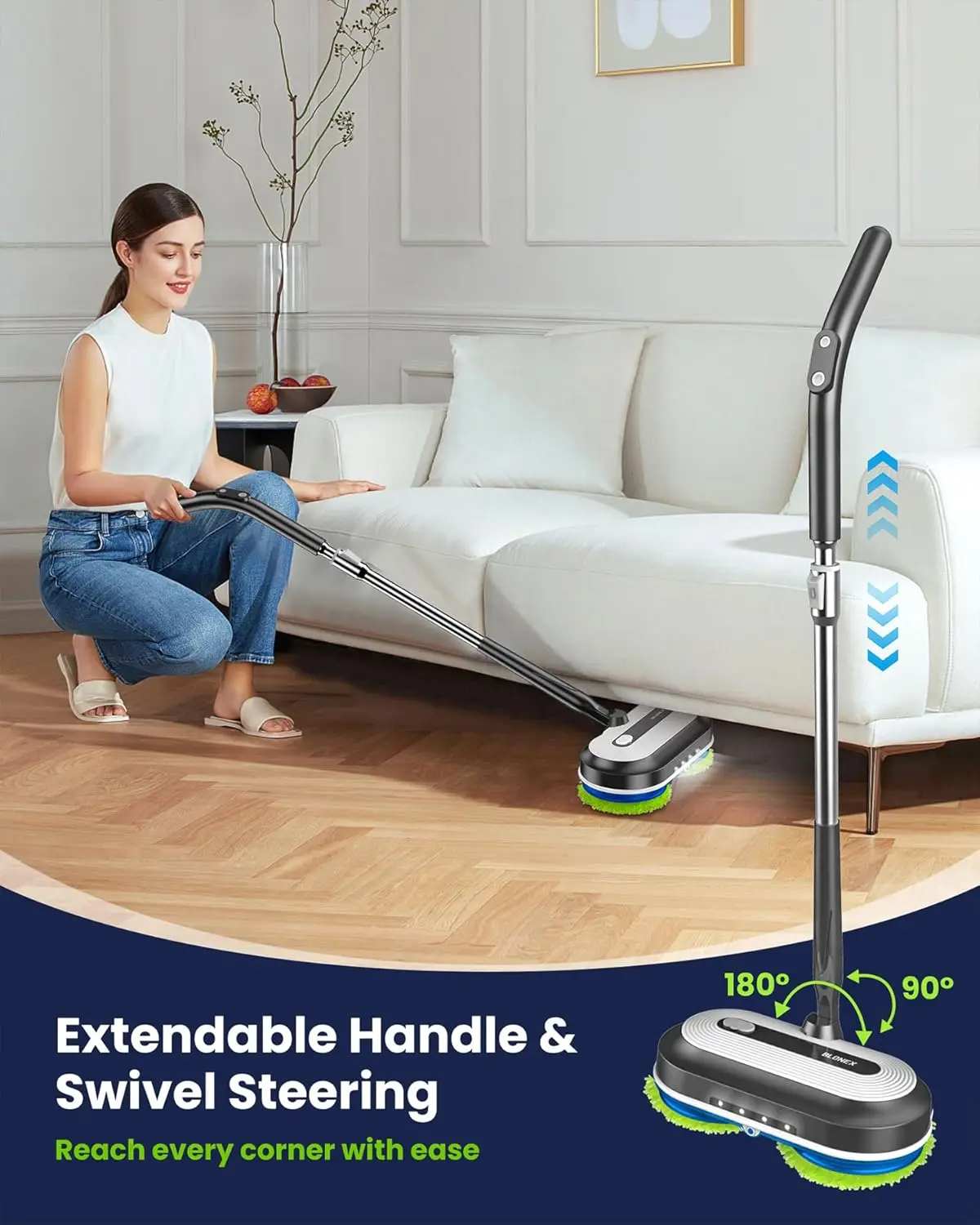 Effortless Cleaning: Our electric mop features a dual-motor system spinning at 160 RPM to remove tough stains like coffee and mud with ease. It ensures every corner is sparkling clean, making home maintenance simple and effective. Long-Lasting Power: Equipped with a 2000mAh battery and fast-charging technology, this mop cleans up to 2000 sq. ft. on a single charge, lasting 30-50 minutes for uninterrupted cleaning sessions. Flexible Design: With an adjustable height of up to 43 inches and a precision LED-lit head, it reaches all areas. The spacious 290ml water tank allows for extended use without frequent refills. Versatile Use: Suitable for hardwood, marble, tile, and other floor types, this mop handles various surfaces smoothly. It delivers a polished finish without damaging floors. Safe and Durable: Certified safe with reliable performance, it comes backed by support for long-term use. Built to last with quality materials for consistent results over time. Self-Propelled Ease: The self-propelling mechanism glides effortlessly across floors, reducing physical strain during cleaning. Enjoy a hassle-free experience that saves time and effort. Convenient Features: Includes water sprayer for targeted cleaning and adjustable tube for comfortable handling. Designed for user comfort to enhance your daily routine.