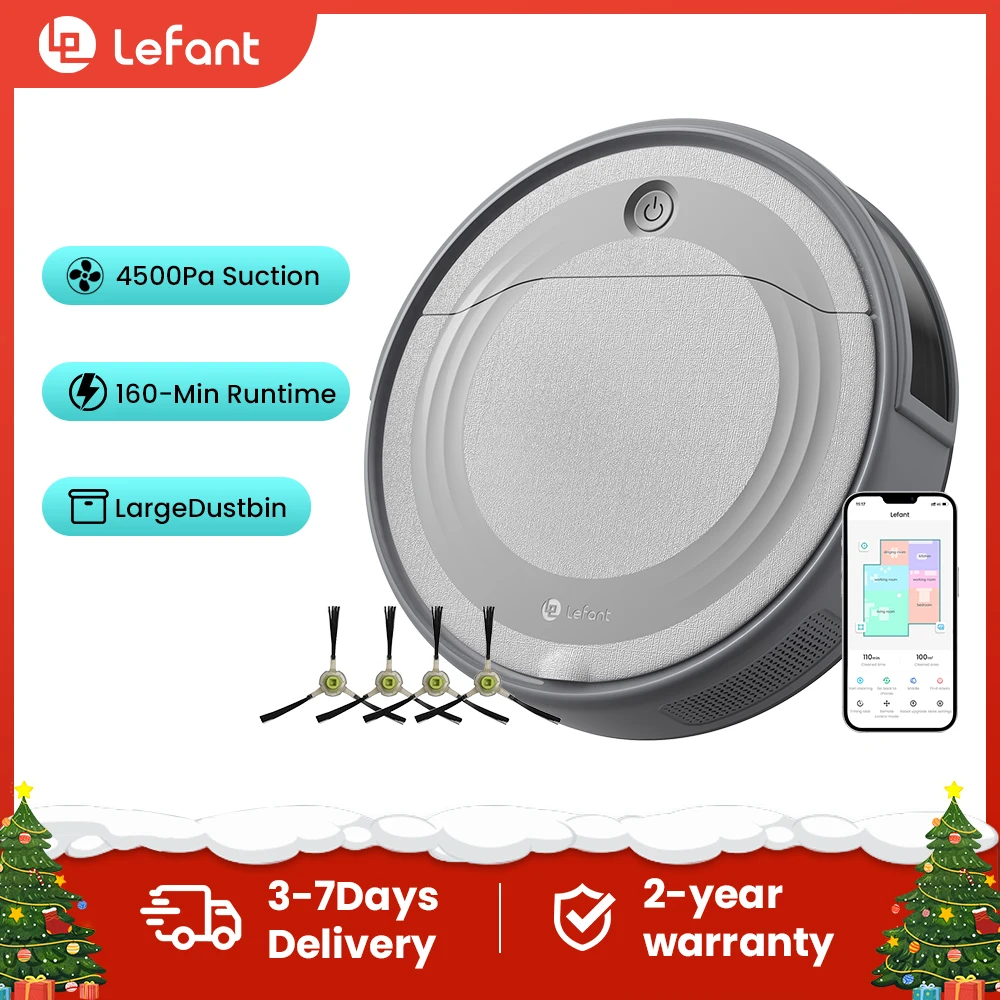 One-Button Operation Guide: Press and hold for 3S-POWER ON(the light is blue); Click-STRAT/PAUSE; Double Click-RECHARGE(the light is purple); Press and hold for 6S-INTERNET STATUS(the robot says “di-di”); Press and hold for 12S-POWER OFF(the robot says “di”).With a compact design, the M310 robot vacuum effortlessly navigates under low furniture and into hard-to-reach corners. Unique brushless design, 4500pa suction and dual side brushes that effectively gather dust, pet hair, and debris.The most amazing function is schedule. You set up a certain schedule and a type of cleaning through Lefant App and the robot vacuum will do the rest. Lefant APP can also adjust the suction and direction, check the cleaning area, find your robot, etc.Long Runtime & Quite CleaningM310 Run for 160 minutes in Quiet Mode, with advanced brushlessmotor technology, the noise can be reduced to 60dB, it won’t disturb your family.Easily control the M310 robot vacuum with the Lefant APP, Google Home, or Alexa voice commands,providing a convenient cleaning experience at your fingertips(Note: The app supports only 2.4GHz WiFi). It also supports a remote control (B0BZYZN12Q), making it user-friendly for parents and elders.
