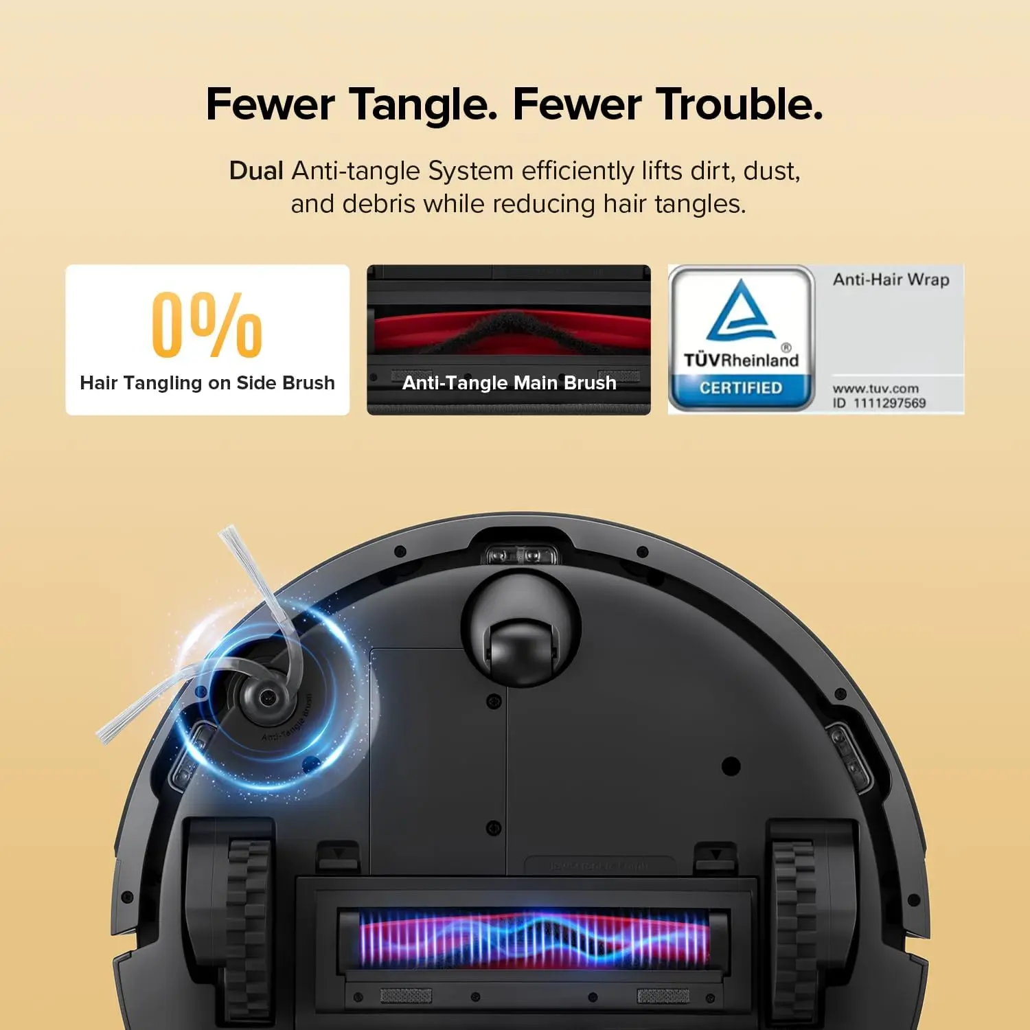 This advanced robot vacuum and mop combo is designed to make your home cleaning effortless and efficient. With powerful suction of 10,000Pa, it effectively removes dirt, dust, and pet hair from various surfaces including carpets. The dual anti-tangle system prevents hair and debris from getting stuck in the brushes, ensuring smooth operation. Equipped with LiDAR navigation technology, it maps your home accurately for thorough cleaning without missing spots. You can control the mopping function via a user-friendly app, allowing you to schedule cleanings and adjust settings remotely. The sleek black design blends seamlessly with modern home decor while providing reliable performance. Ideal for households with pets or high-traffic areas that require frequent maintenance.