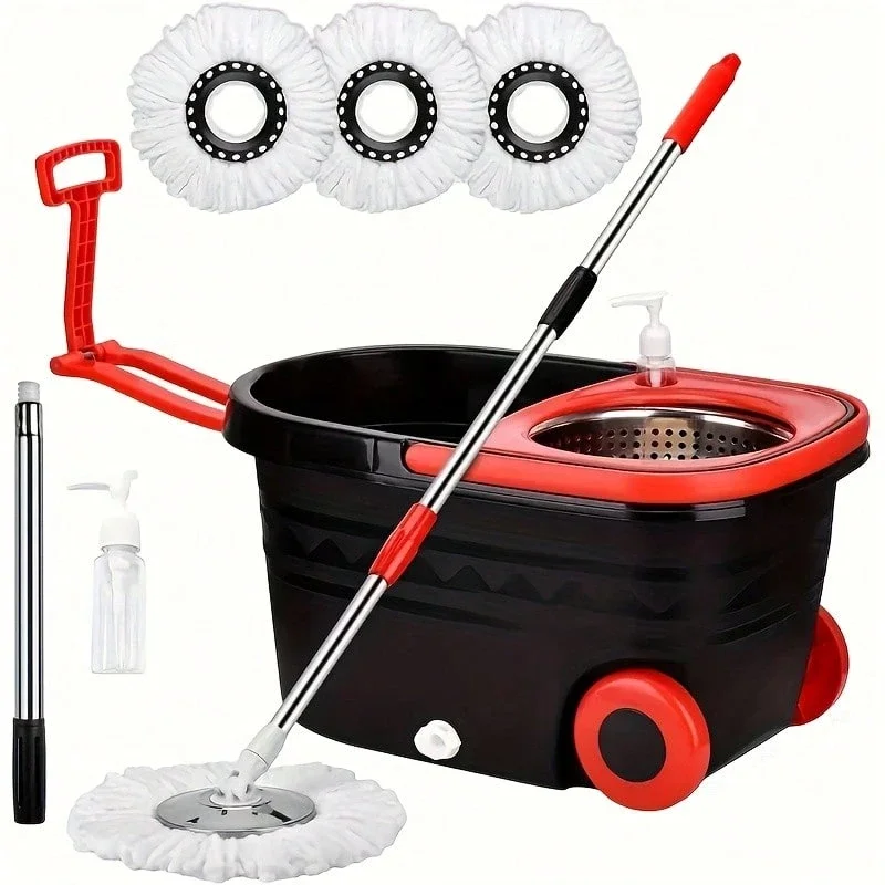 Spinning Mop And Bucket Set, Mop Bucket Set, 360° Spinning Mop Bucket System With 3 Microfiber Replacement Heads